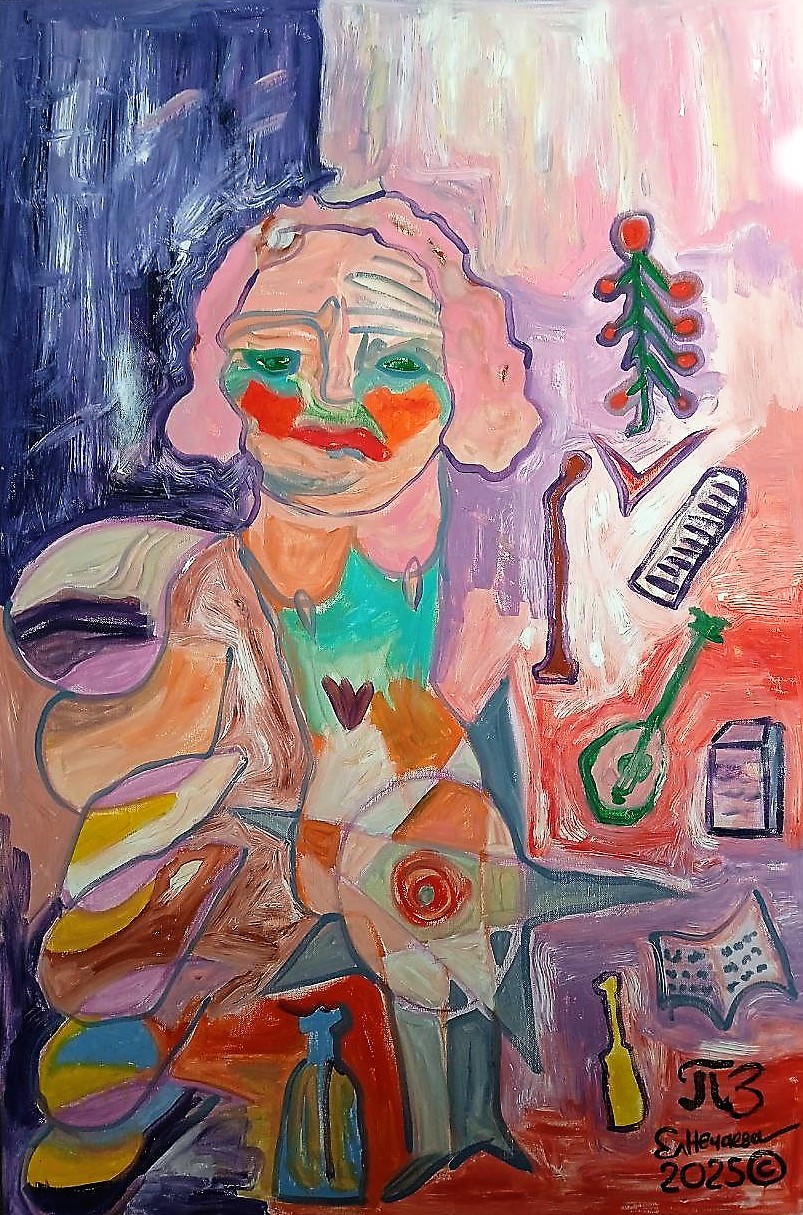 ЖАНР: абстрактный натюрморт / сцена быта с элементами фигуративной композиции
