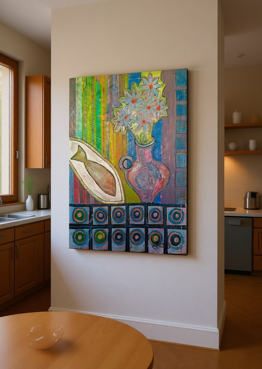 Поэтому я очень рекомендую приходить в мастерскую — здесь вы сможете почувствовать картину «живьём», увидеть её в настоящем свете и понять, как она будет жить в вашем пространстве.